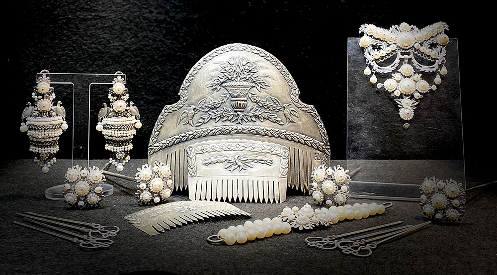 Handcrafted ornamental combs and sets of jewels for the woman’s regional costume of “fallera”